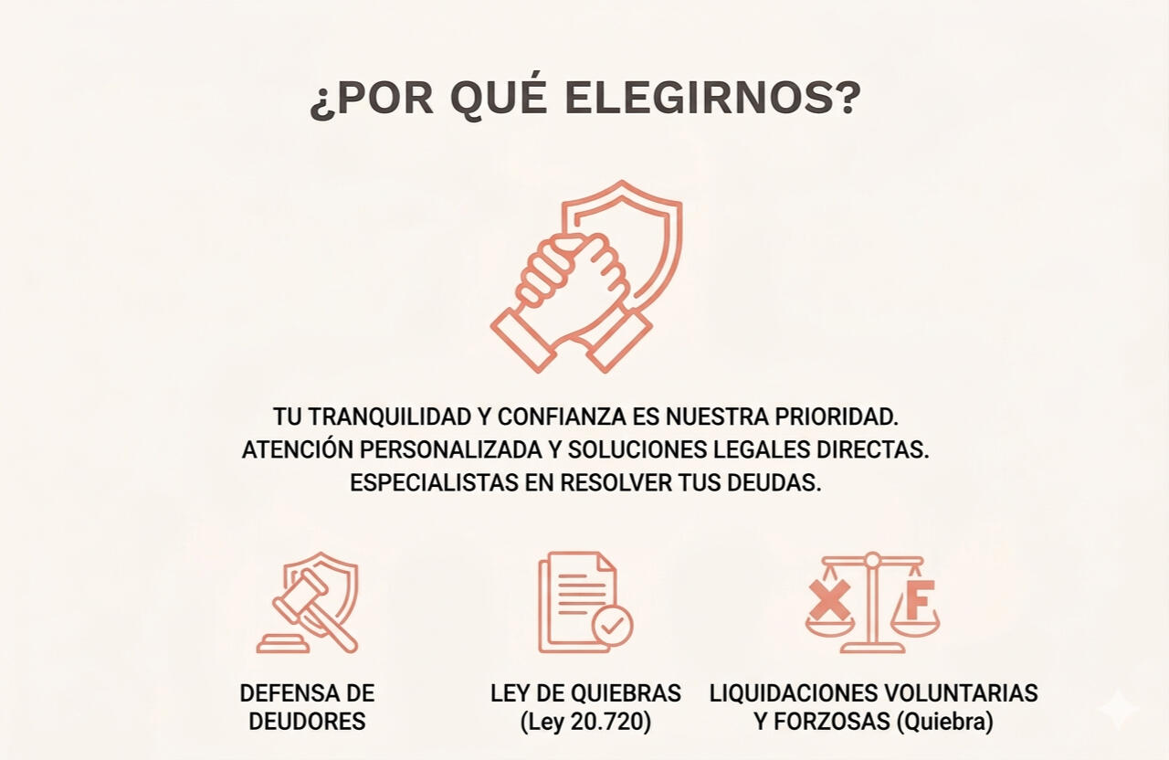 La ley 20.720 permite eliminar o reorganizar tus deudas mediante Liquidación voluntaria o Renegociación.